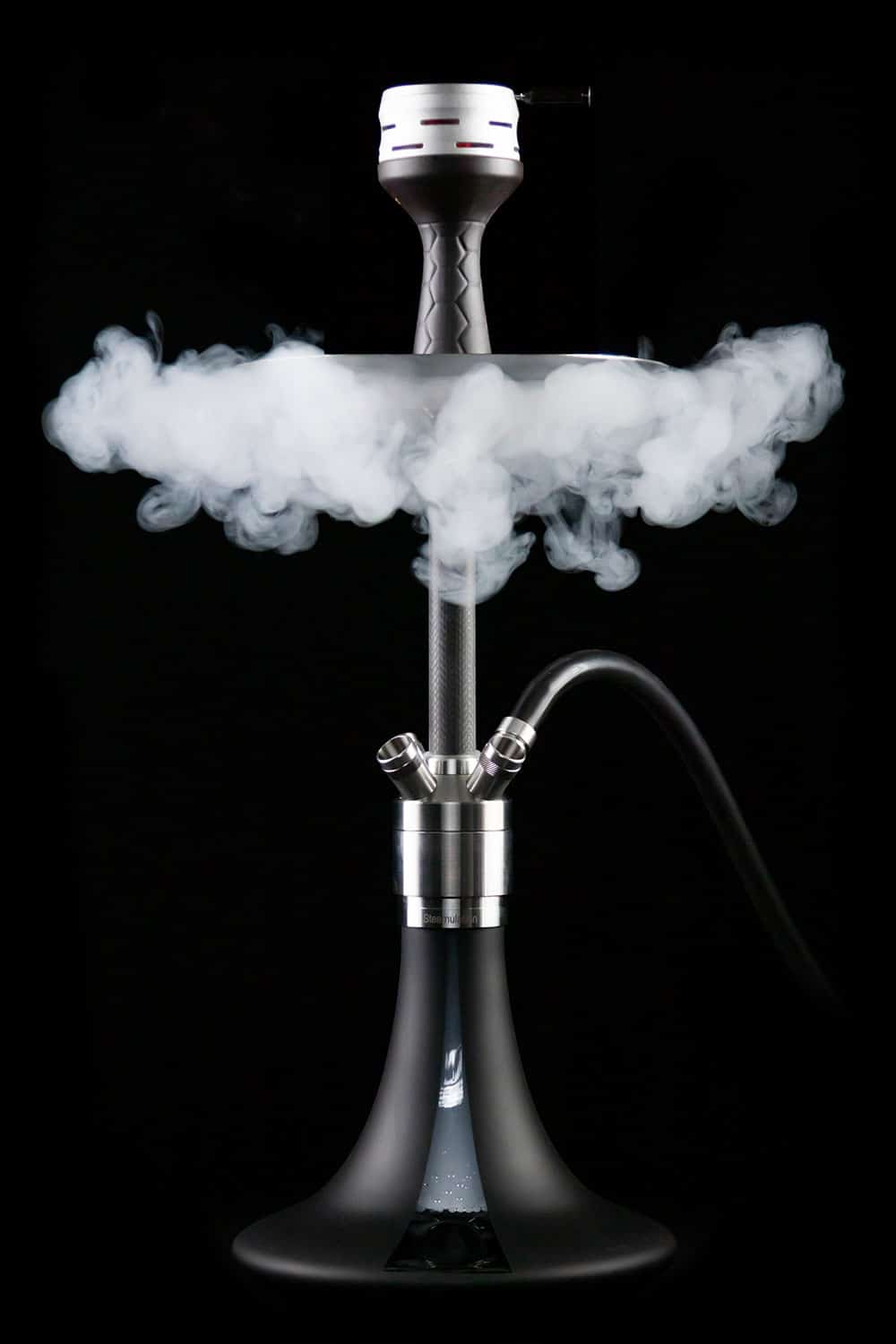 Niveau esthétique, la chicha Steamulation Pro X 2 propose un aspect sobre, elle reprend donc les codes de sa grande sœur, la Pro X. Elle a une colonne et une assiette en acier inoxydable V2A, et elles sont ultra-résistantes. La chicha s’équipe ensuite d’un vase en verre comme l’ensemble des modèles de la marque. Cette chicha propose aussi d’un cut 18/8 sur la colonne, vous pourrez ainsi la customiser avec un récupérateur de molasse ou autres accessoires de customisation disponibles sur NARGUILUXE.COM