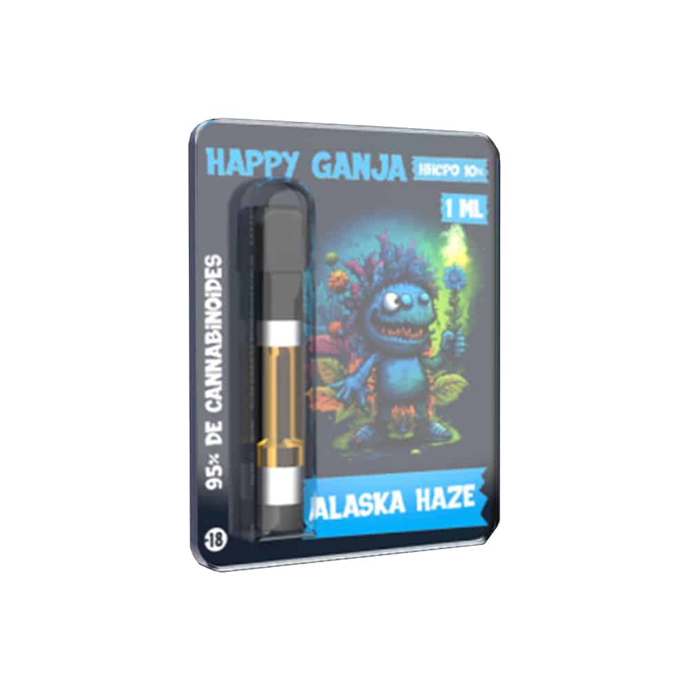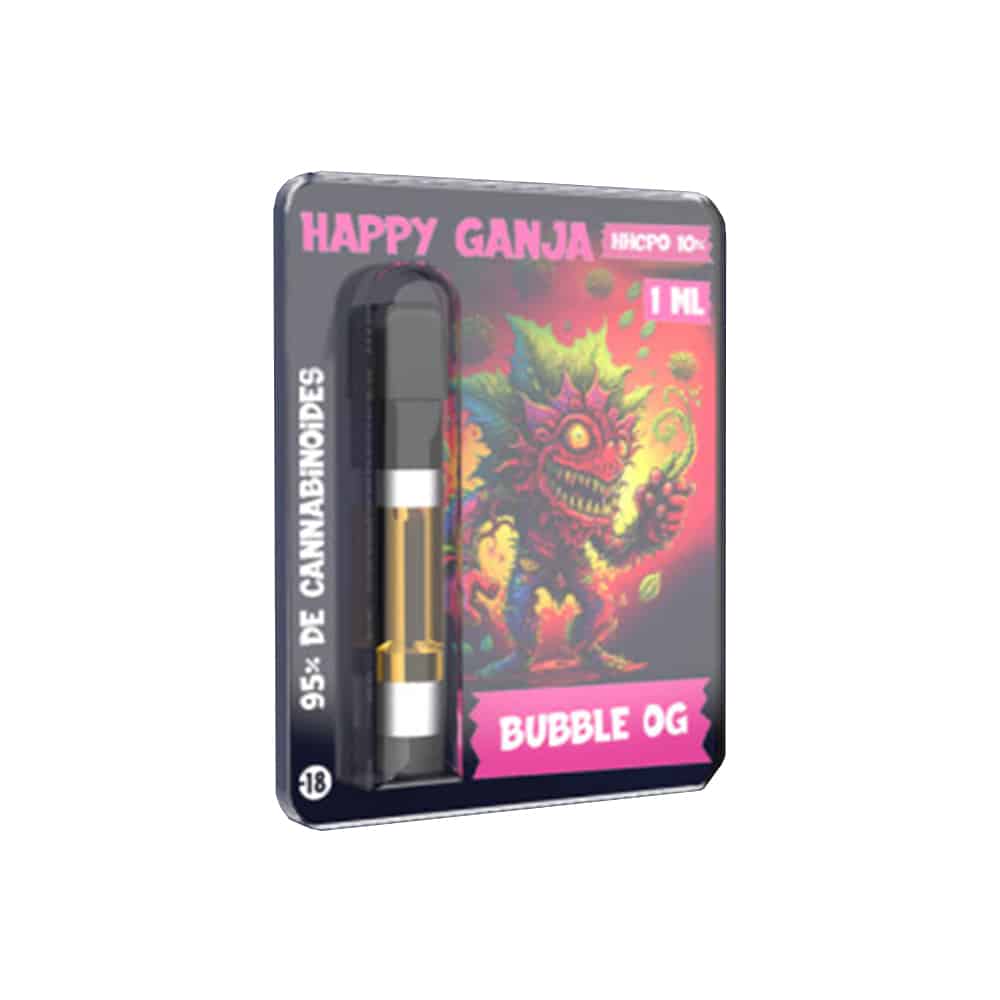 Nous retrouvons ici le HHCPO dans une cartouche à vaper de la marque Happy Ganja.
