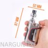 Elle est compatible avec un accu au format 21700 (non fourni), mais elle accepte également les accus 18650 grâce à l’adaptateur fourni. Elle peut atteindre une puissance de 100W. Pour la première fois, l’accu ne se met pas dans un conteneur, il suffit de le placer à son emplacement habituel et de le recouvrir par le tube coloré prévu à cet effet.