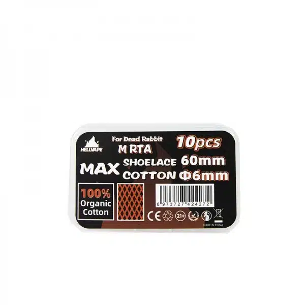 Le Cotton Max Shoelace de Hellvape est spécialement conçu pour s’adapter parfaitement à l’atomiseur Dead Rabbit M du fabricant, notamment pour accompagner les célèbres feuilles de Mesh Wire de Hellvape.