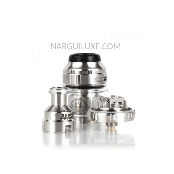 - Avec son gabarit 25 mm de diamètre à la base, il est avant tout conçu pour fonctionner avec du matériel puissant et bourré d’autonomie. Ainsi, on tire le plein potentiel de cet atomiseur cloud chasing avec une box double accu 18650 ou 21700. Avec une telle cigarette électronique, il y a de quoi tenir un bon moment en enchaînant les gros nuages de vapeur tout en profitant d’un rendu gustatif des e liquides tout droit venu des sommets de l’Olympe.