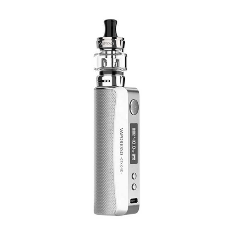 Le Kit GTX one se compose d’une box avec une batterie intégrée rechargeable via un câble USB de type-C, ainsi que d’un clearomiseur GTX Tank 18.