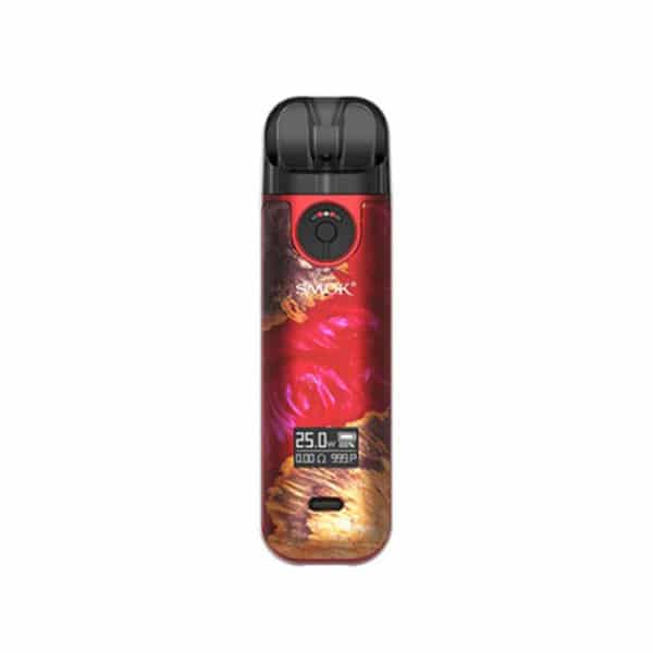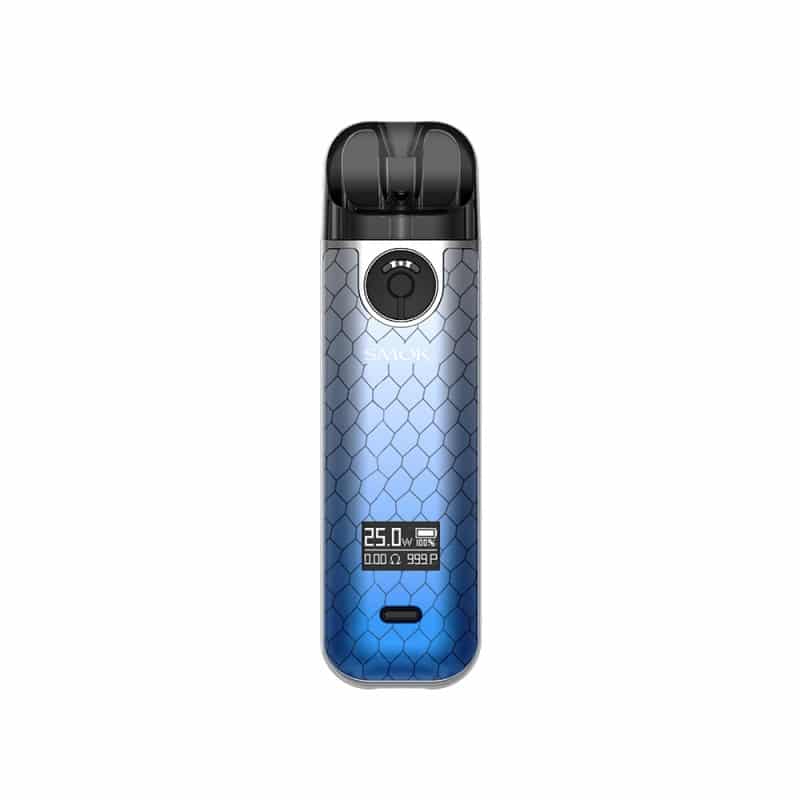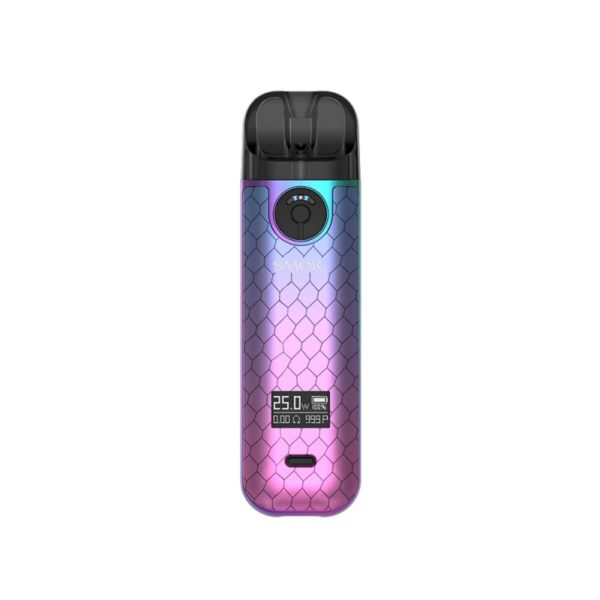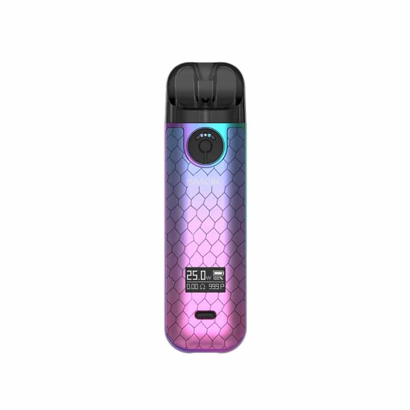 A contre courant de la tendance actuelle, le Pod Novo 4 présente un design ultra moderne, décliné en une dizaine de coloris ! Pas de revêtement Cuir ici, Smoktech joue plutôt sur les dégradés de couleurs et les motifs originaux. D’une hauteur de 93.5 mm pour un poids de 51.7 grammes, ce mini Pod se fait facilement oublier et trouve sa place dans les plus petites poches.