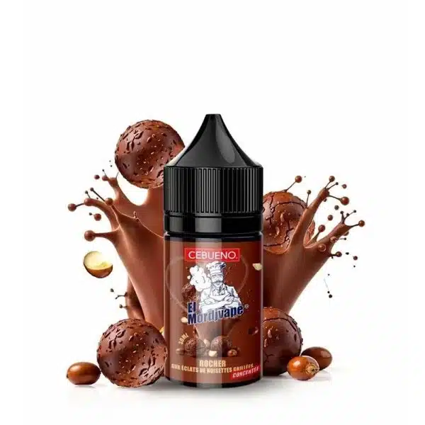 El Mordjvape – Rocher : Une version plus intense et chocolatée, inspirée du célèbre rocher chocolat-noisette. Un équilibre parfait entre le fondant du chocolat et le croquant des éclats de noisettes grillées.