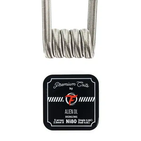 • Alien DL Ni80 3mm 0,30Ω : Valeur de 0.30Ω en single, 0.15Ω en dual. Parfait pour vos atomiseurs en DL.