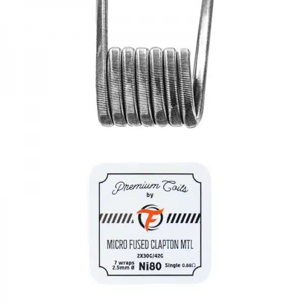 Micro Fused Clapton MTL Ni80 0,88Ω, Alien DL Ni80 3mm 0,30Ω, Alien DL Ni80 2.5mm 0,30Ω, Fused Clapton DL Ni90 0,24Ω, Triple Fused Clapton DL Ni80 0,30Ω, Quad Fused Clapton DL Ni80 0,20Ω, Alien RDL 3mm 0,5Ω, Alien RDL 2.5mm 0,5Ω, Fused Clapton RDL Ni80 0,50Ω